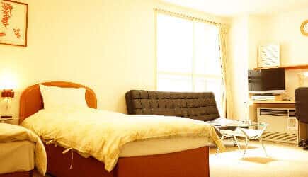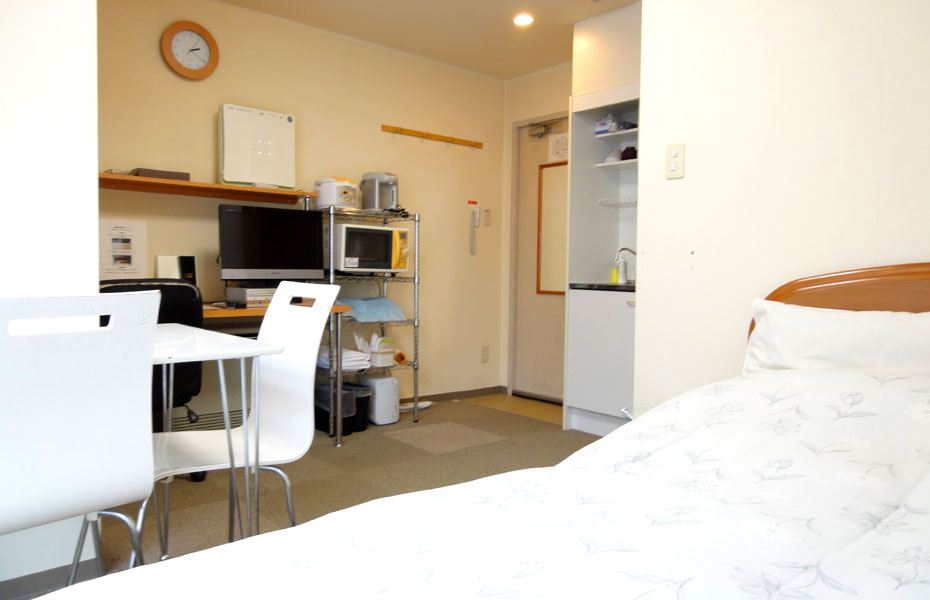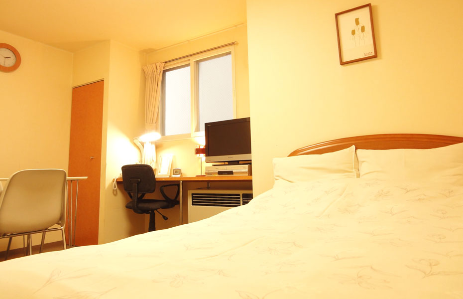セミダブルベッドなので1名様でも2名様でもご利用いただけます。